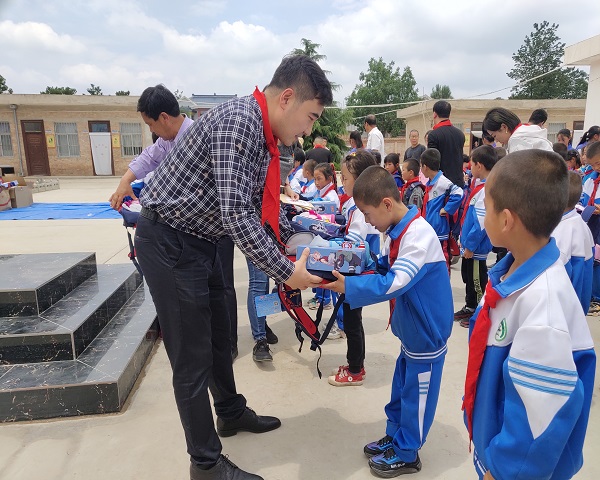 6 月25日,侯云昌書記一行先后前往金橋慈善基金會出資興建的凈口立尊第二小學(xué)和中原鄉(xiāng)田站小學(xué),慰問當?shù)亓羰貎和?,受到當?shù)貛熒臒崃覛g迎。慰問現(xiàn)場,金橋慈善基金會分別向兩所學(xué)校的老師和同學(xué)發(fā)放了慰問金及助學(xué)金11 萬元,并發(fā)放了臺燈、床品、書包、水壺等慰問品近6 萬元,集團員工自發(fā)捐贈課外書籍110 余冊。同時,金橋慈善基金會向中原鄉(xiāng)田站小學(xué)捐贈100 萬元,用于教學(xué)樓的重建。捐贈儀式后,金橋焊材集團黨委副書記、金橋慈善基金會秘書長李紅梅講話,學(xué)校校長致感謝詞。