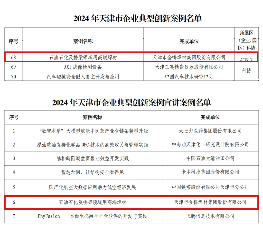 金橋焊材集團(tuán)創(chuàng)新案例成功入選天津市企業(yè)典型創(chuàng)新案例