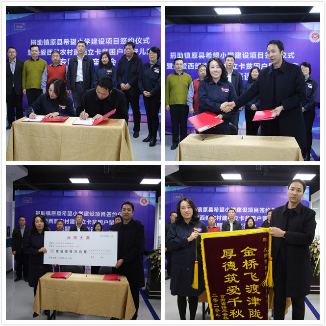 在天津市工商聯(lián)領導、中華工商時報天津記者站站長及金橋慈善基金會理事的見證下,基金會秘書長李紅梅代表金橋慈善基金會與甘肅省鎮(zhèn)原縣教育局主任吳登攀簽訂了捐贈協(xié)議。該筆捐贈資金將用于鎮(zhèn)原縣希望小學的建設項目。